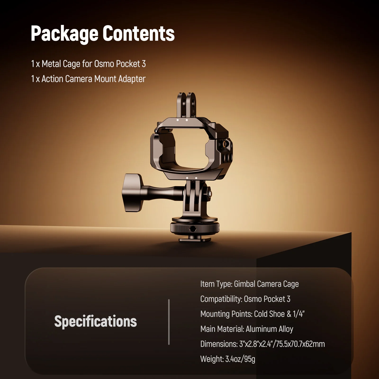 Perfect Fit & Protection:Â Rigid aluminum alloy cage with shock-absorbing lining provides secure protection for the DJI Osmo Pocket 3.