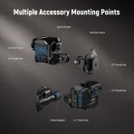Multiple Accessory Points: Cold shoe, 1/4″ thread (ARRI), and three standard 1/4″ threads for attaching microphones, lights, and other accessories.