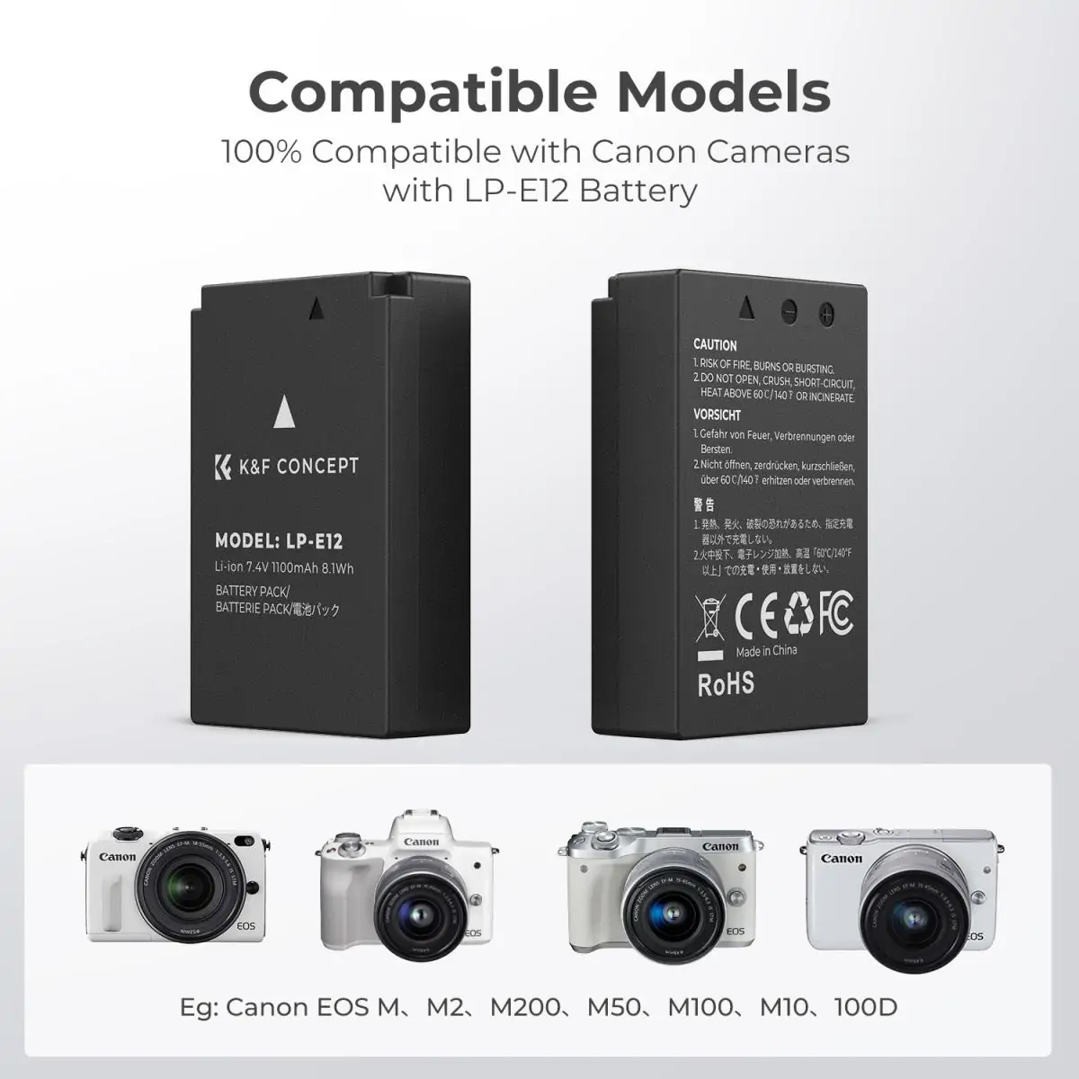 The set includes two 1100mAh LP-E12 replacement batteries, offering high capacity to support extended photo and video shoots. With these additional batteries, you can capture more moments without worrying about running out of power, ensuring you’re always ready for the next shot. - Standard Compatibility with Canon Cameras