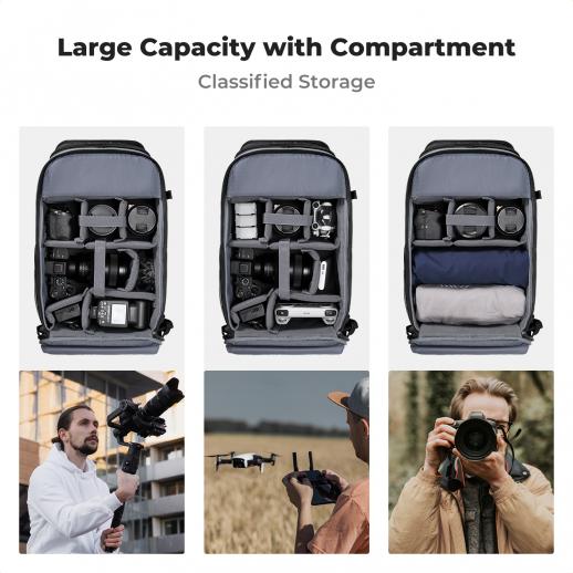This backpack is ideal for daily photography, outdoor shoots, and travel, offering enough capacity for essential equipment while remaining easy to carry.
