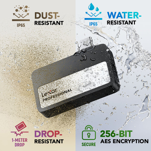Solid-state technology also provides improved durability compared to traditional hard drives. The Lexar 2TB Portable SSD is resistant to shocks and vibrations, helping protect valuable data during transport and location shoots.