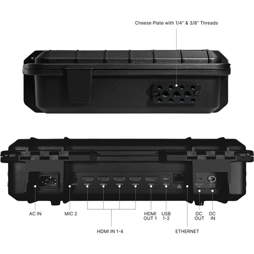 This switcher kit includes everything needed for efficient live production. It features a built-in display that allows real-time monitoring without requiring an external screen.
